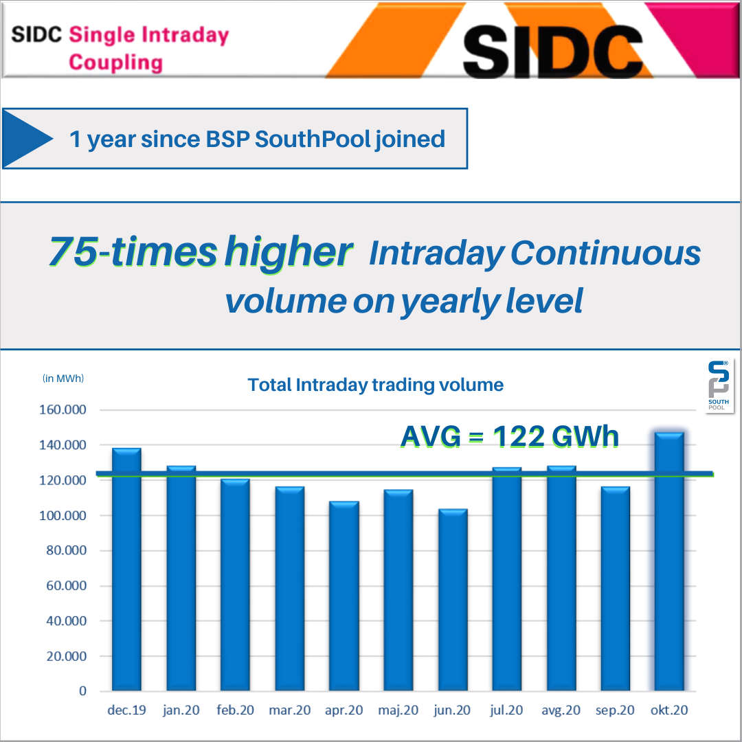 1 year since BSP SouthPool joined SIDC - 75-fold increase in Intraday Continuous trading volume