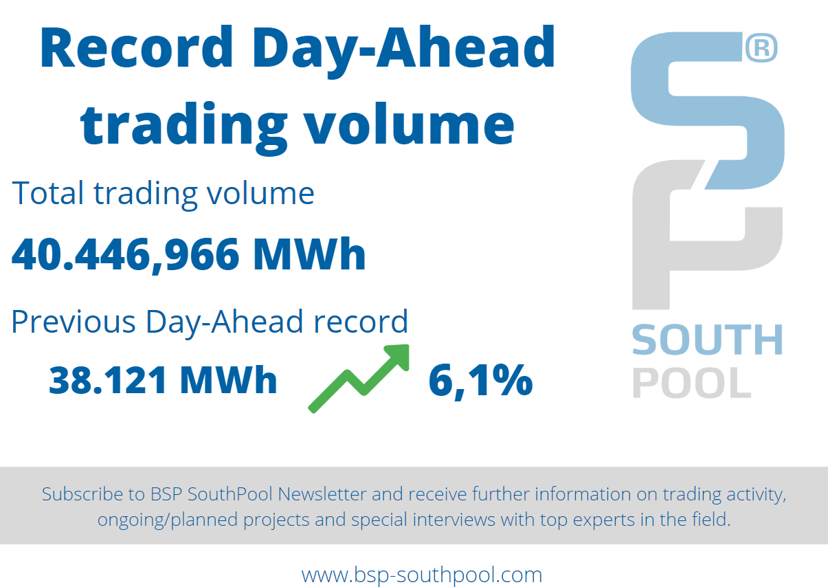 Record breaking Day-Ahead volume 40.447 MWh for delivery day 15.10.2022