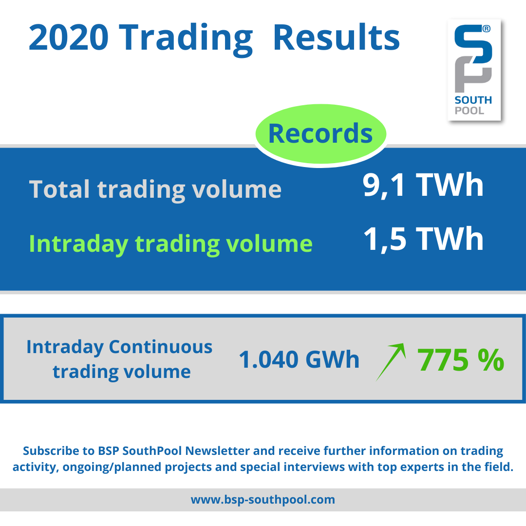 Record trading volume in 2020 at 9.1 TWh