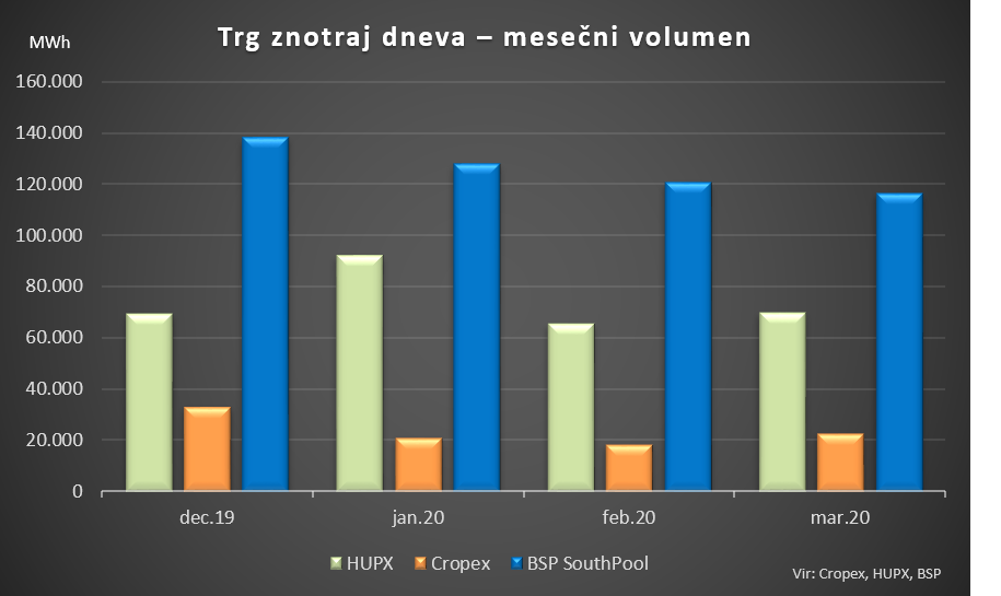 Trgovalni volumen na trgu znotraj dneva je v marcu 2020 znašal 116 GWh